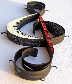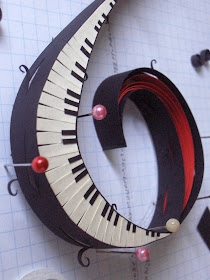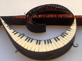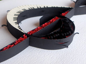 ReplyDeleteYour explanation is great and we can see your pictures perfectly. I love it all but my favourite part is the black strips cut out and rolled a bit {and the piano keys are AMAZING too...I can see why it would be challenging, and the red letters too}.